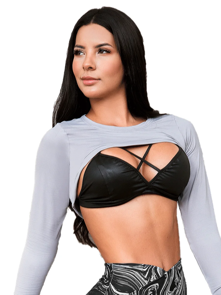 LONG SLEEVE ASYMMETRIC CROP TOP WITH GLOVE INCLUDED. MAXIMUM ELONGATION - SOFT TOUCH
