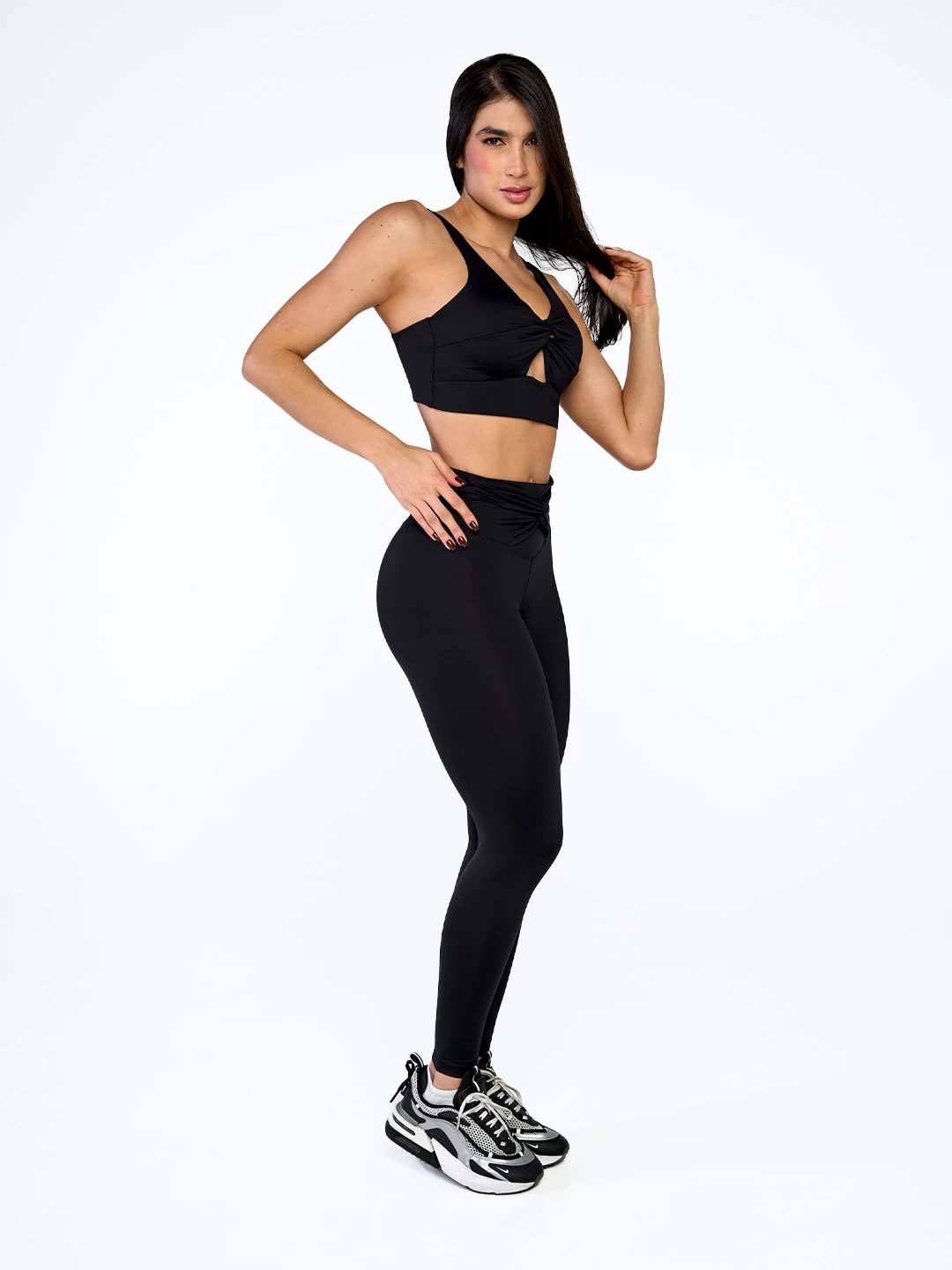Top con escote en V y nudo en la parte delantera que resalta la silueta con un toque femenino, complementado con una espalda recta para un equilibrio perfecto entre estilo y comodidad