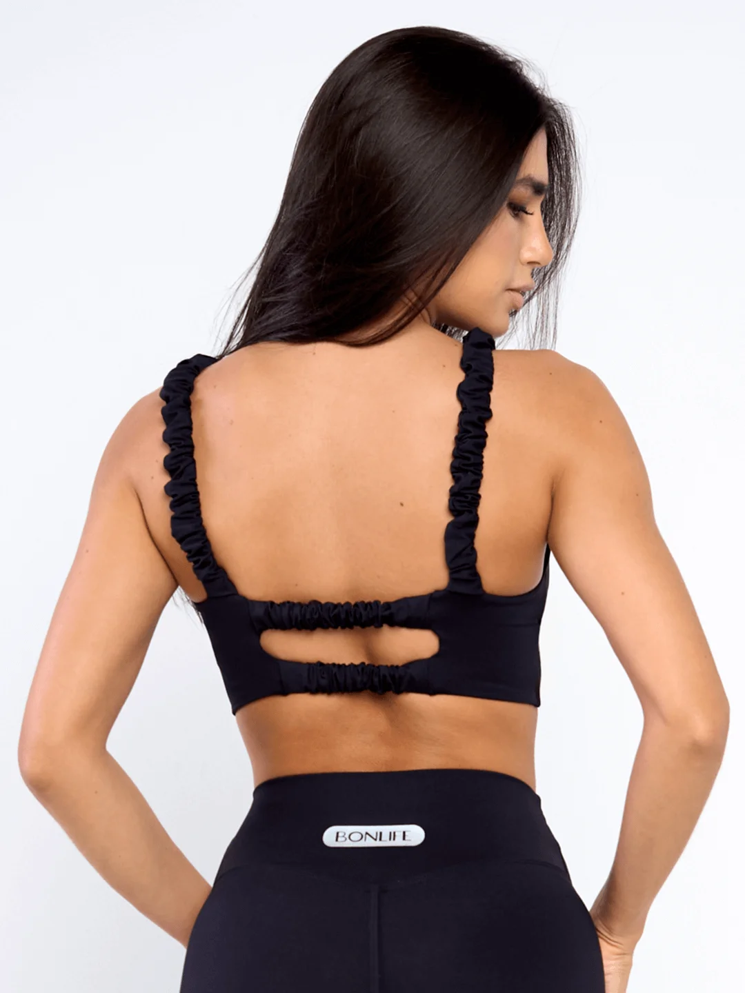 Top con Realce de Busto y Detalle de Tiras Drapeadas Este moderno Top con Realce de Busto es la combinación perfecta de estilo y funcionalidad. Con un diseño cuidadosamente pensado para brindar soporte y definición, este top no solo realza tu figura, sino que también ofrece comodidad durante todo el día. Las tiras drapeadas añaden un detalle único que genera textura, creando un efecto visual que destaca y añade dinamismo a tu look. Ideal para quienes buscan una propuesta moderna y versátil, este top es una prenda imprescindible en tu armario. 81% POLIAMIDA 19% ELASTANO